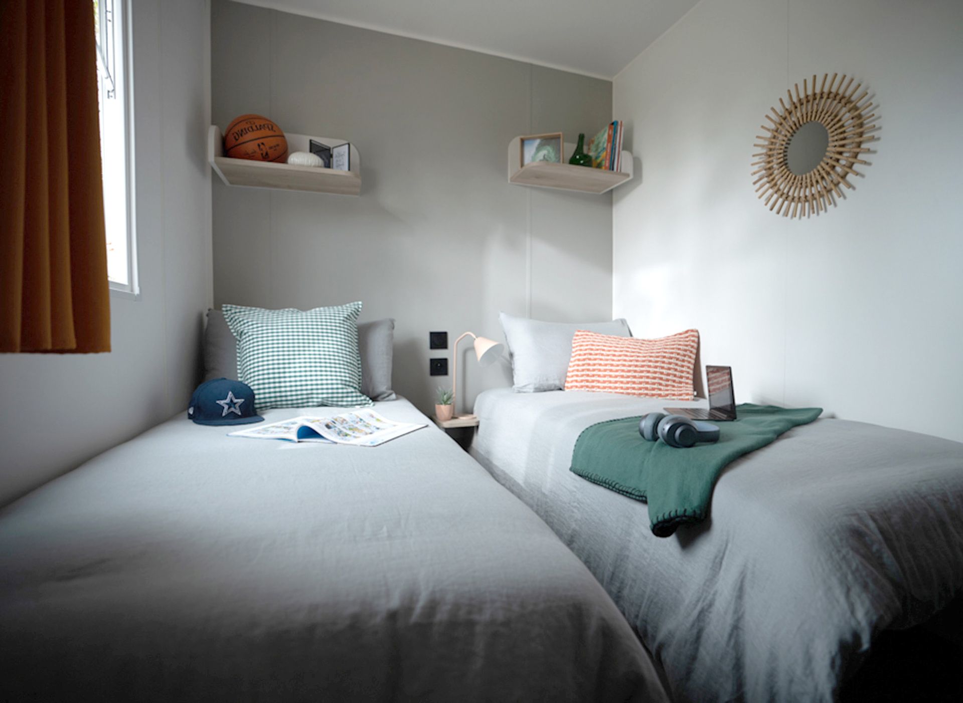 Le mobil-home LAGUNE est idéal pour des vacances en famille ou entre amis à Saint-Georges-de-Didonne, tout près de Royan. Climatisé et spacieux, il peut accueillir jusqu’à 6 personnes dans un cadre confortable et convivial. Il se compose d’une chambre avec un lit double (140 cm) et de deux chambres avec deux lits simples (80 cm) chacune. Pour votre confort, une télévision est à disposition. Côté extérieur, vous profiterez d’une terrasse en bois, couverte ou semi-couverte selon les modèles, parfaite pour vos repas en plein air et vos moments de détente.